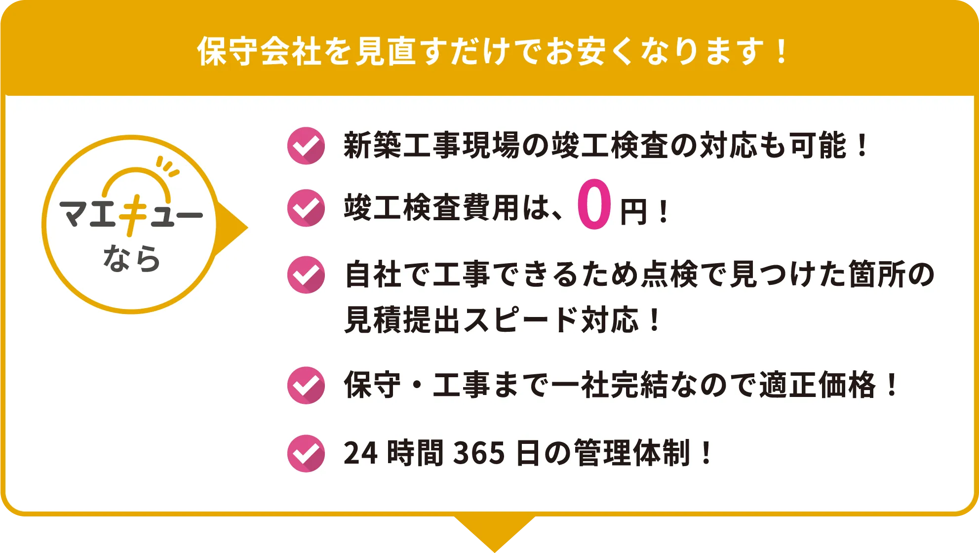マエキューでは、竣工検査の費用を0円で